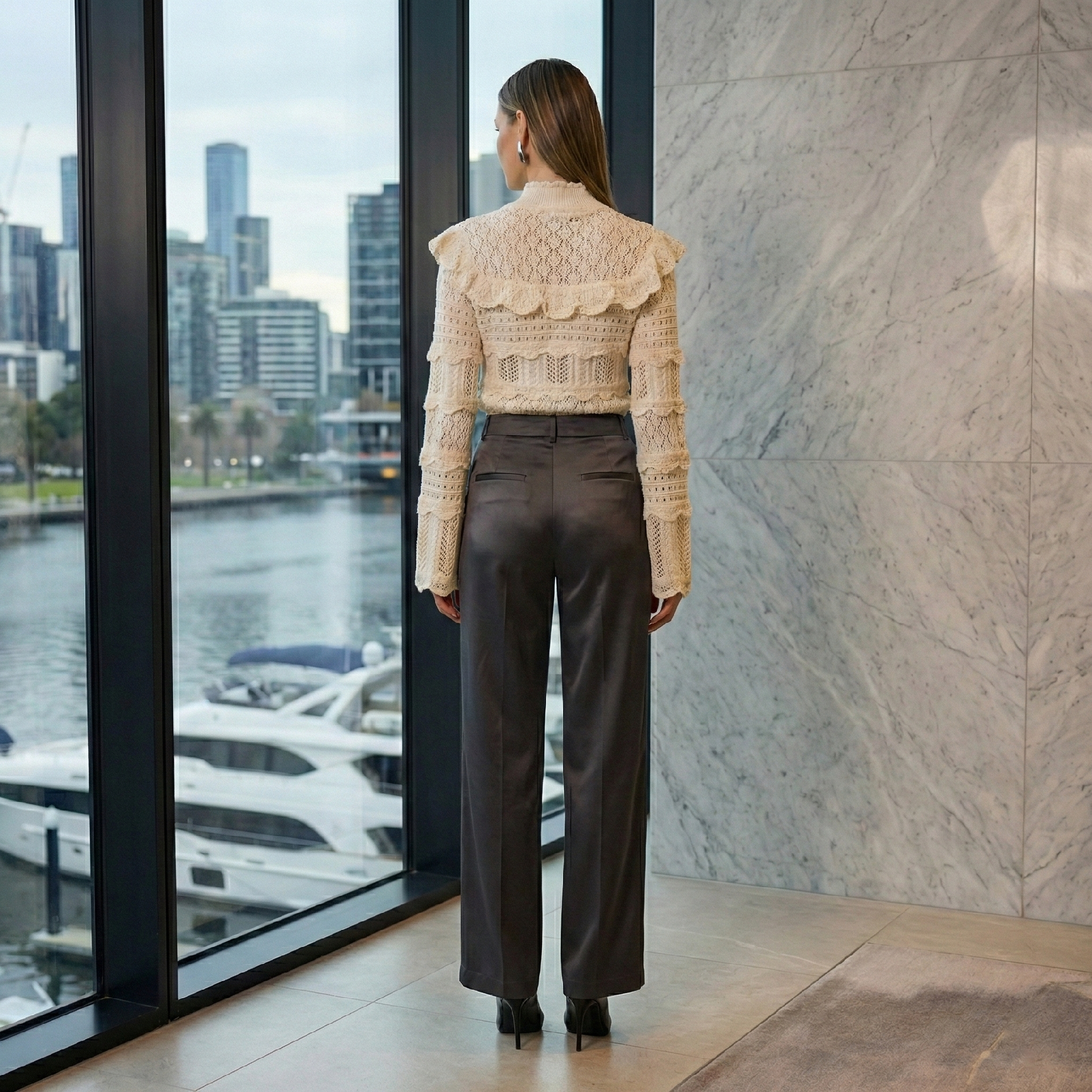 • 产品描述:阳光绘就的剪影。阴影中纯白,阳光下荷叶边化作深海蔚蓝。宛如浪花轻吻海岸,勾勒出优雅轮廓。一抹微妙而诗意的魔法。