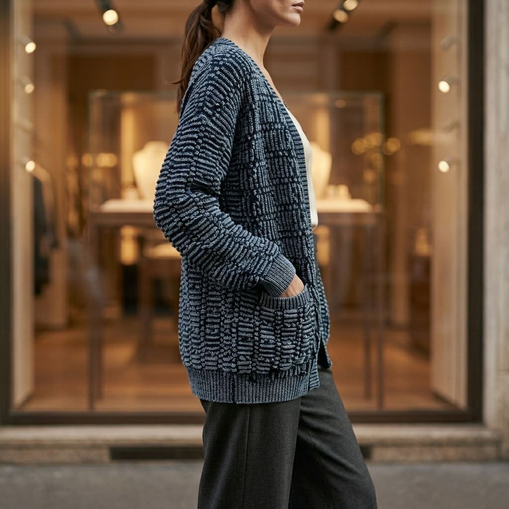 石磨丹宁针织开衫 石磨酵洗针织工艺 YX935