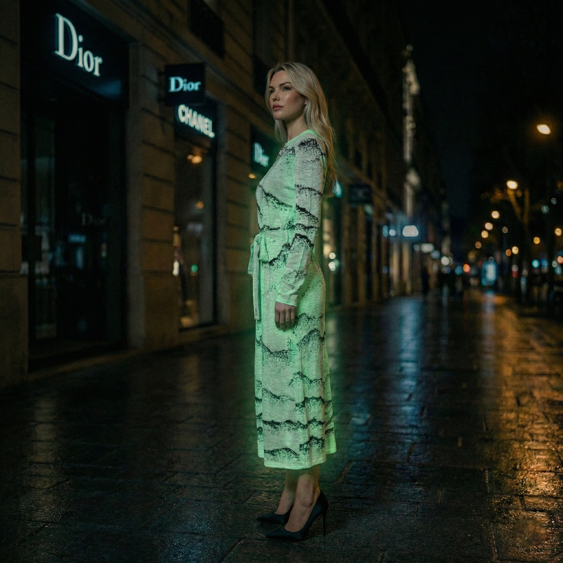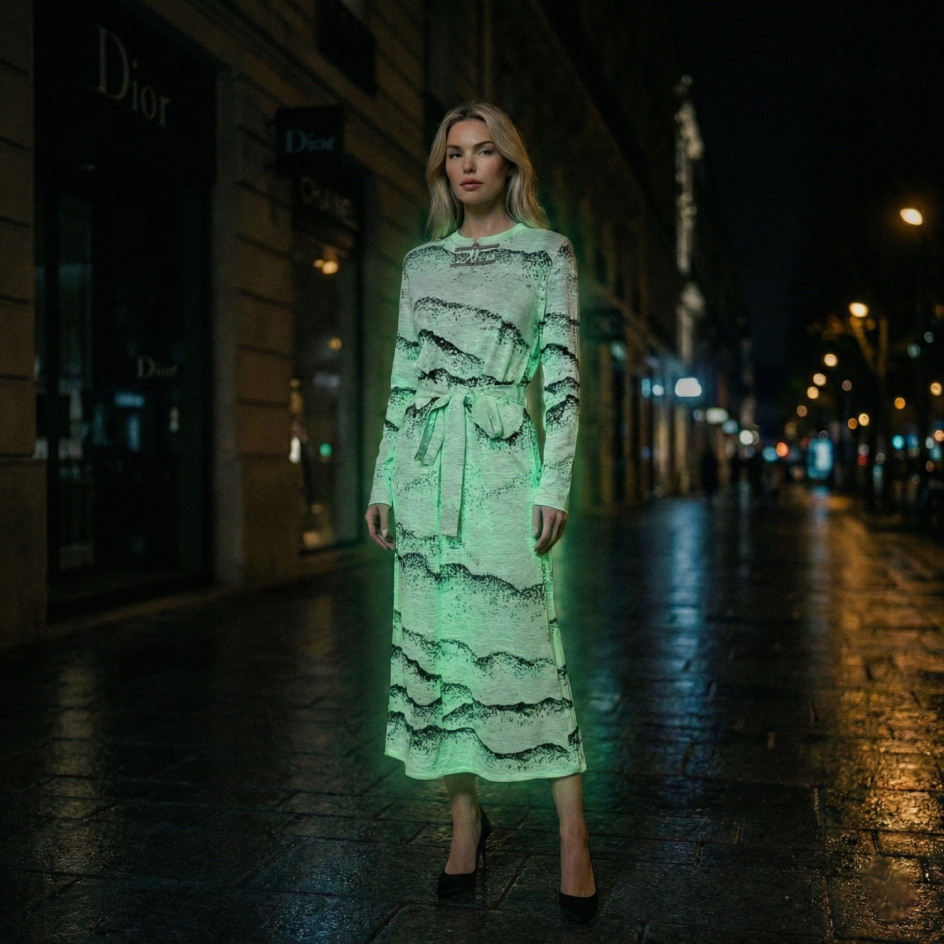 夜光水墨山水裙 分区夜光针织技术 YX942