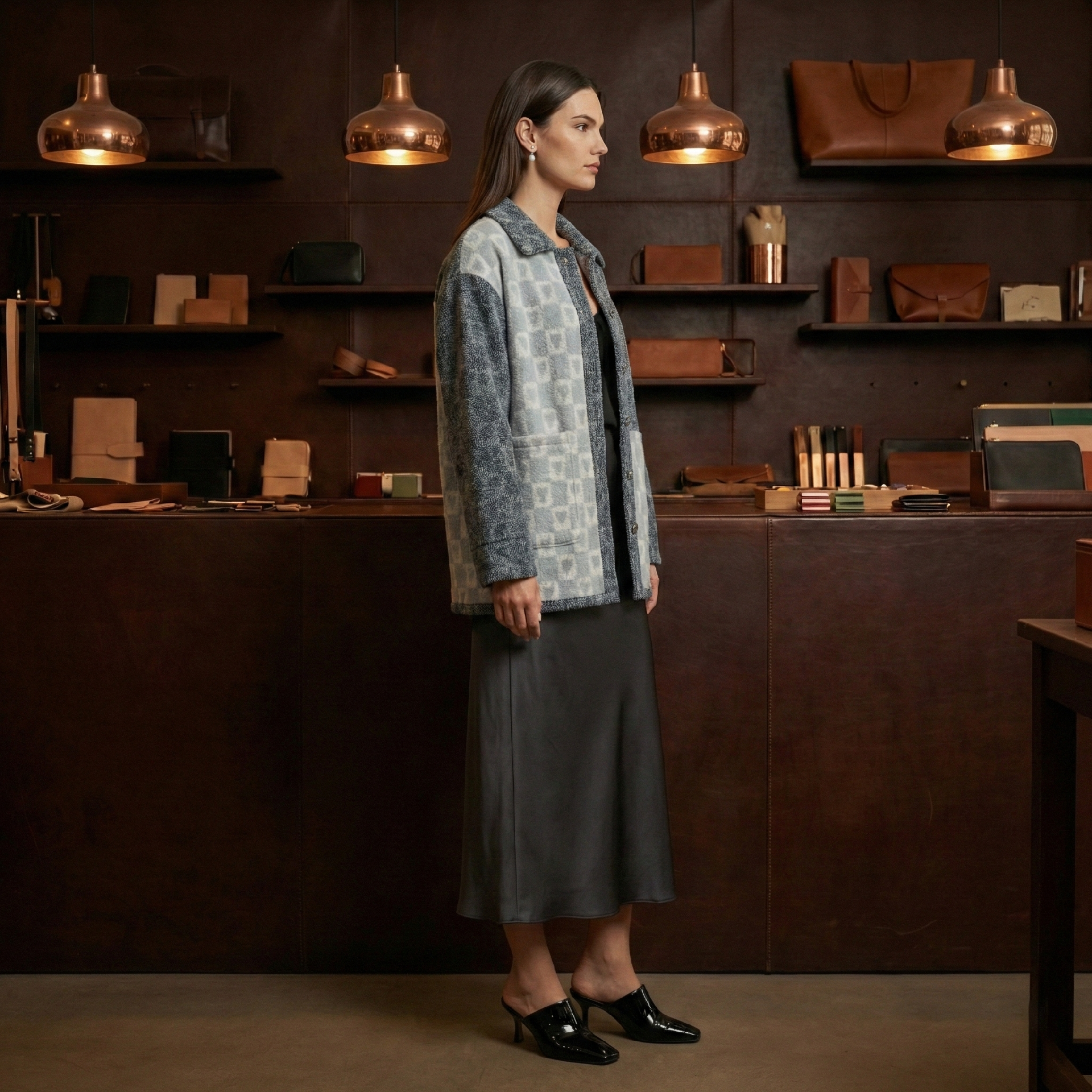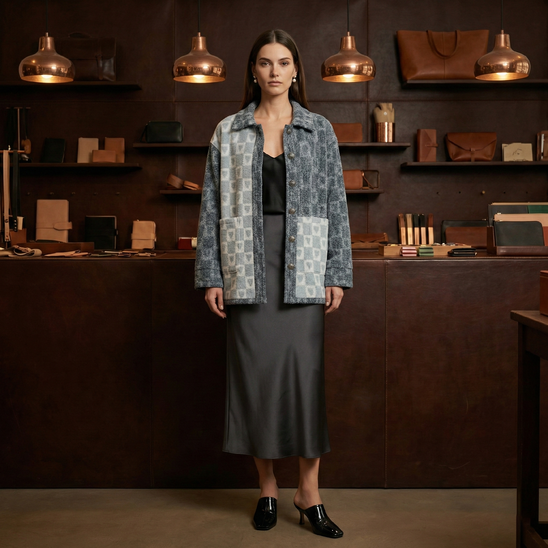 • 产品描述:零胶针刺,物理融合。工艺将丹宁与光感面料合二为一。室内浅蓝爱心静谧,阳光下瞬间化作深紫脉动,与深色丹宁形成强烈的可持续视觉反差。