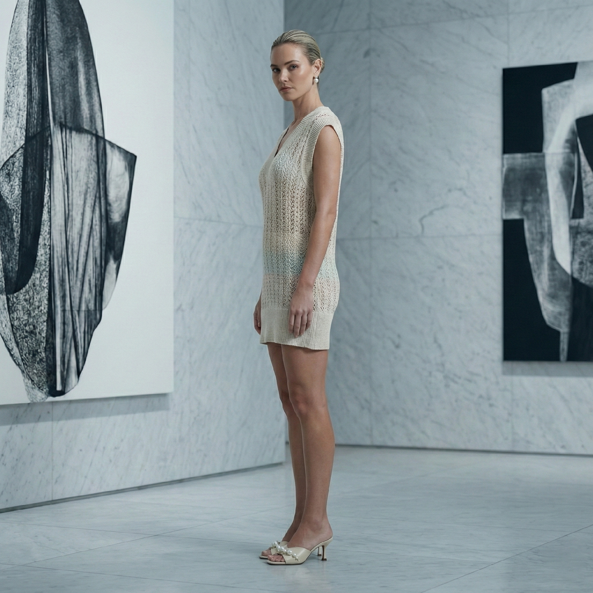 • 产品描述:源自自然的透气光谱。由100% FSC纸纱织就,轻盈如风。镂空针织在室内呈现微妙的浅幻彩蓝,阳光下瞬间绽放为迷人的绚丽光谱。仿佛穿戴着会呼吸的天然棱镜。